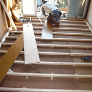 この時に床が平らではない場合が多いので高さを調整しながら組みます。